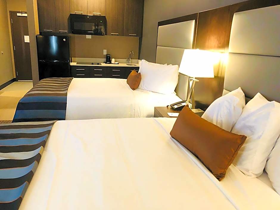 Featuring a private entrance, this air-conditioned suite is consisted of of a kitchenette, 1 bedroom and 1 bathroom with a walk-in shower and a bath or a shower. The suite's kitchenette, which has a refrigerator and a microwave, is available for cooking and storing food. The suite features carpeted floors, a seating area with a TV with cable channels, a tea and coffee maker, a wardrobe, as well as heating. The unit offers 2 beds.